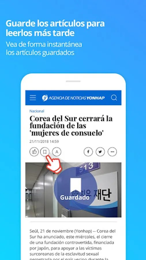 This is the application of the news service in Spanish of the Yonhap News Agency, the main news agency in South Korea. Yonhap offers news services 24 hours a day, 365 days a year, for both local and foreign readers, and is committed to providing fast and accurate information about the news events that take place around the world.