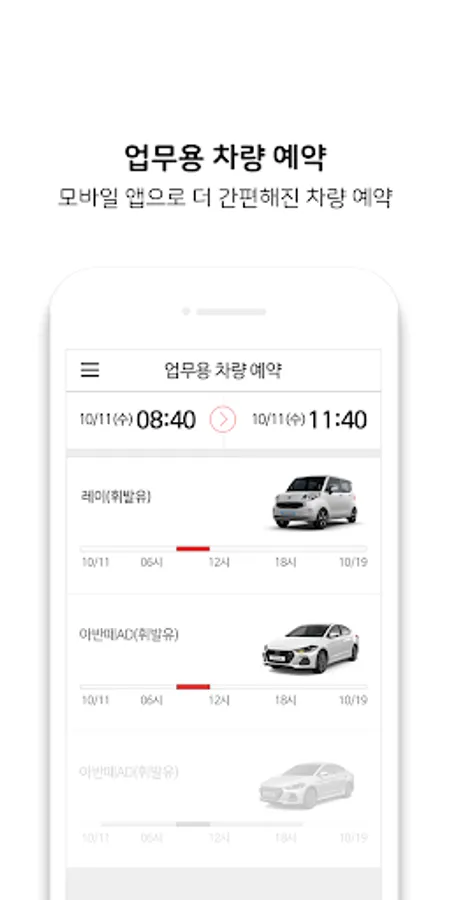 A dedicated vehicle is provided only for corporations, and it is more convenient by simplifying business procedures and document management by automating the vehicle reservation and management of employees through the solution. Employees can easily and conveniently make reservations using the smart key of the mobile app, and managers can check the status of business vehicle use at a glance. Depending on the selected vehicle model, it is reasonable to contract monthly from at least 3 months, and it is possible to reduce maintenance and management costs compared to vehicle purchase.