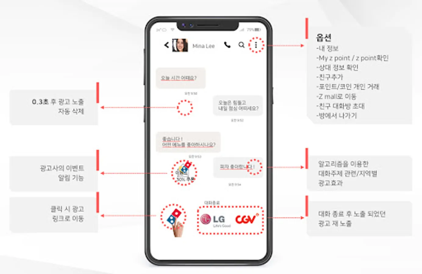 It is a new revenue-type messenger that returns advertising revenue to users by exposing the advertiser's corporate logo and product advertisements behind messages exchanged between users.