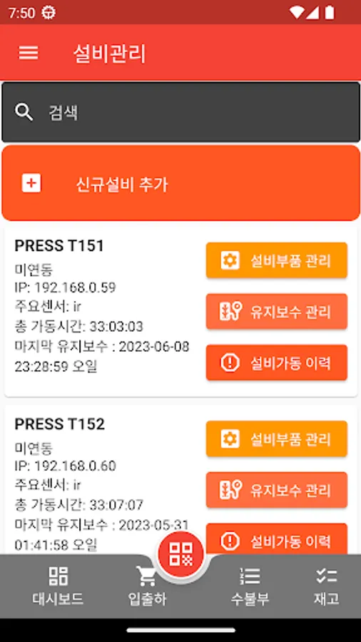 Real-time monitoring of factory facility operation status, item and inventory management, and QR barcode scanning function can be used easily and conveniently.