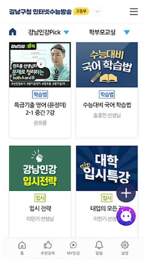 Internet lectures are also classy. Gangnam Inchang provides systematic customized learning with star instructors. With Gangnam Ingang, you can develop your self-directed learning ability and check your grades ascending.