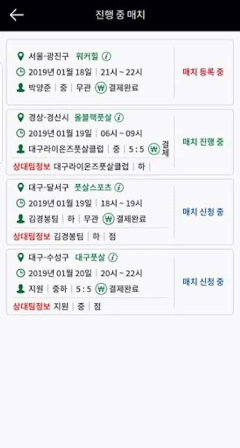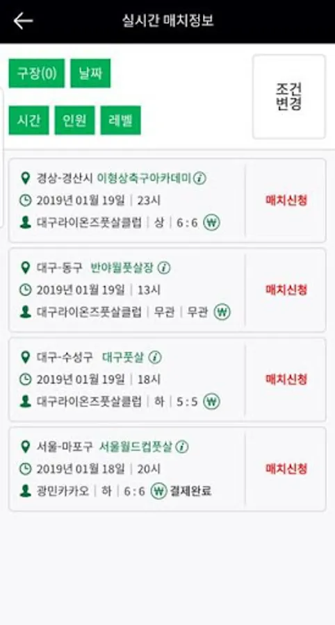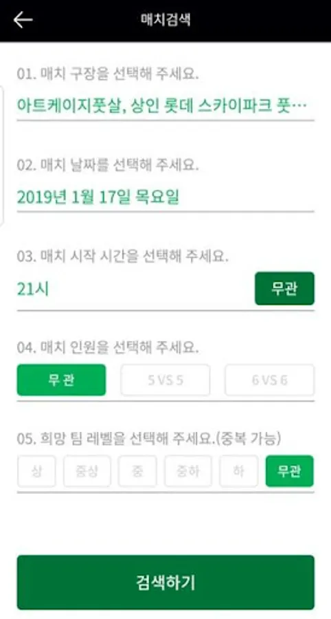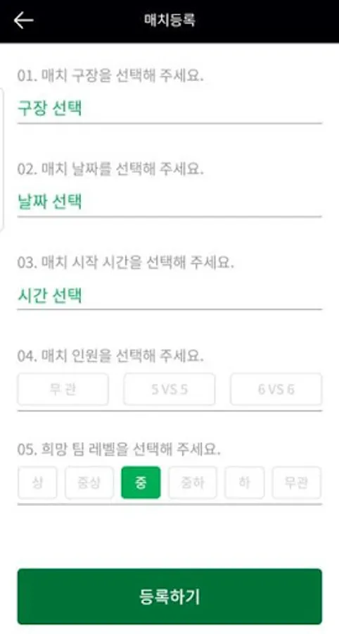 It is a futsal match that matches the opponent team by setting the desired stadium / time / person / team level.