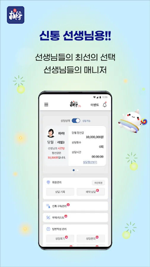 This is an app for teachers. You can simply and easily grasp all information of Shintong, such as settlement details, reservation details, consultation details, and inquiry details.