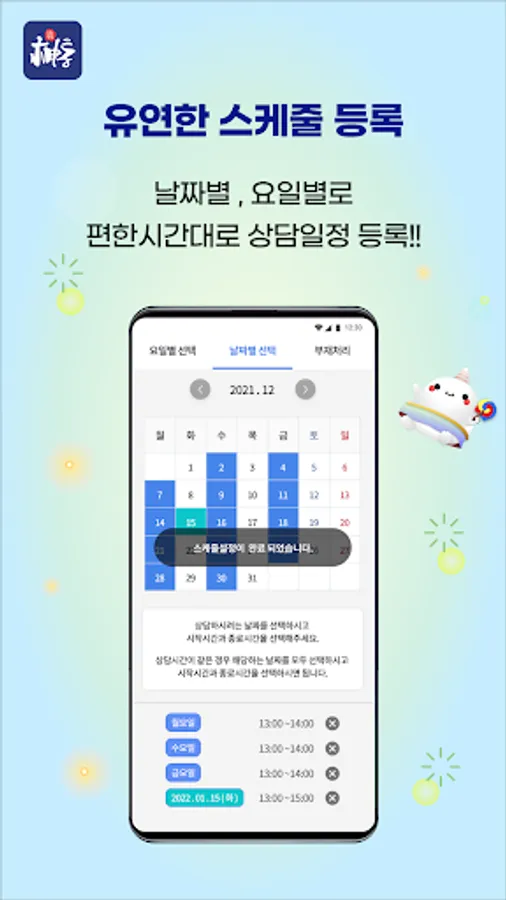 You can register a consultation schedule by date and day of the week at a time that is available to you.