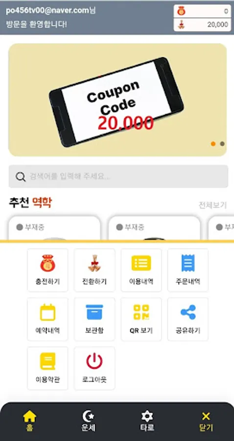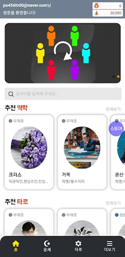You can see today's fortune and tarot points within the application, and you can also make reservations for visiting teachers.