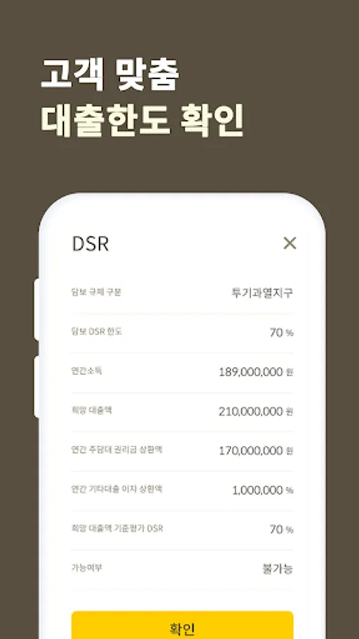 ○ It is possible to check the customer-tailored loan limit. Calculation of limit according to LTV, DTI, DSR OK!