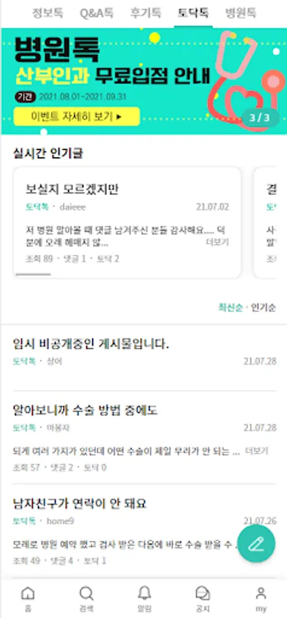 Through various menus such as Q/A Talk, Information Talk, Late Talk, and Hospital Talk