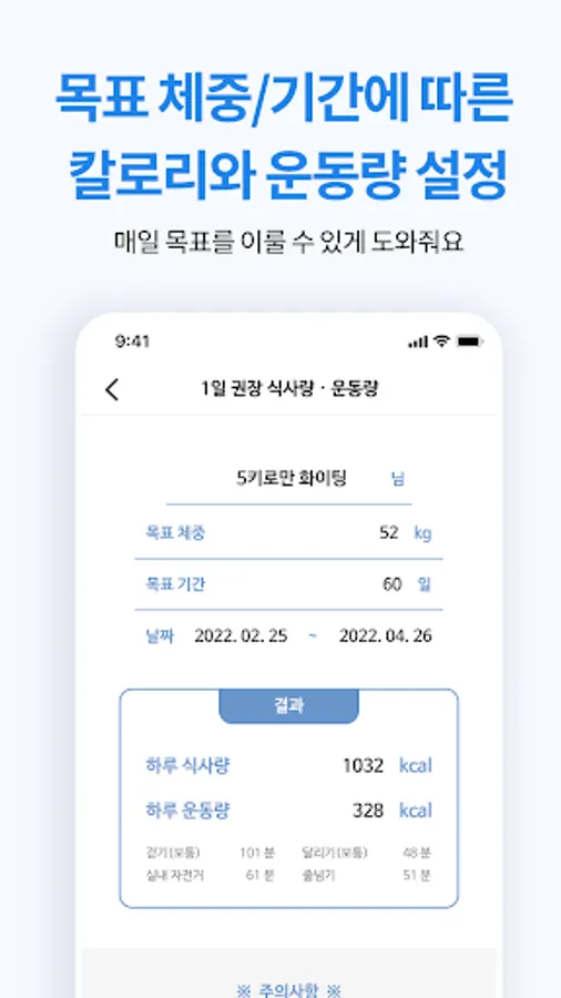 - If you set your target weight and period, you can check the appropriate amount of food/exercise daily.