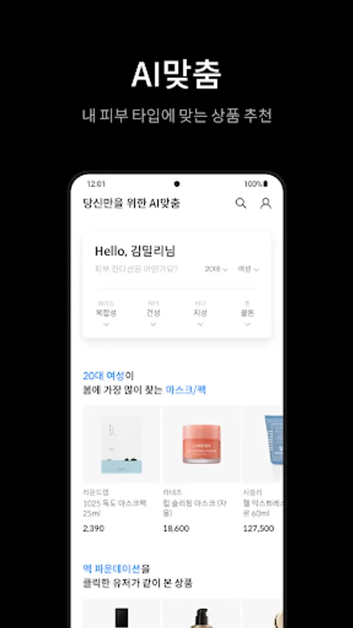 - Smart AI beauty solution matches my beauty information (gender, age, skin type, etc.) with product information (ingredients, effects, etc.)
