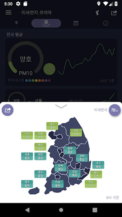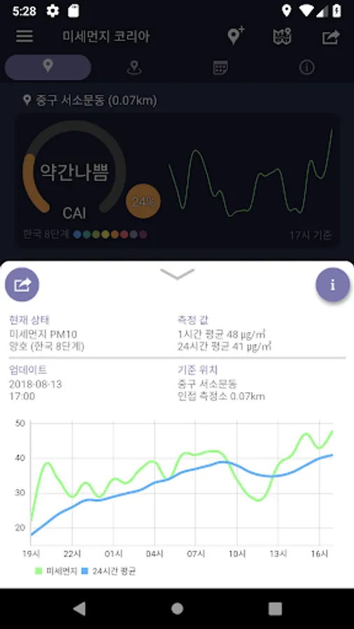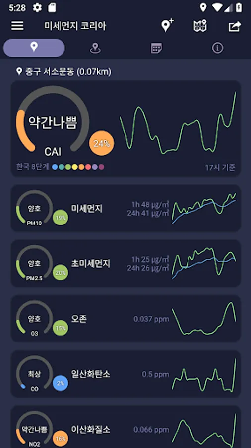 Fine dust Korea is an app that allows users to easily and conveniently check the fine dust and various harmful substances in the air based on real-time data provided by Air Korea.