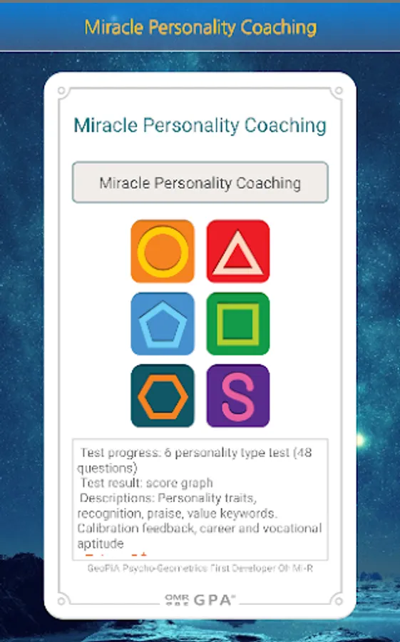 ♠ The personality type test results recognize strengths, weaknesses, and complementary points, and provides following areas of coaching; career, dating, building relationships and communication methods. Provide information to accurately identify yourself, to find appropriate solutions, and to solve problems on your own.