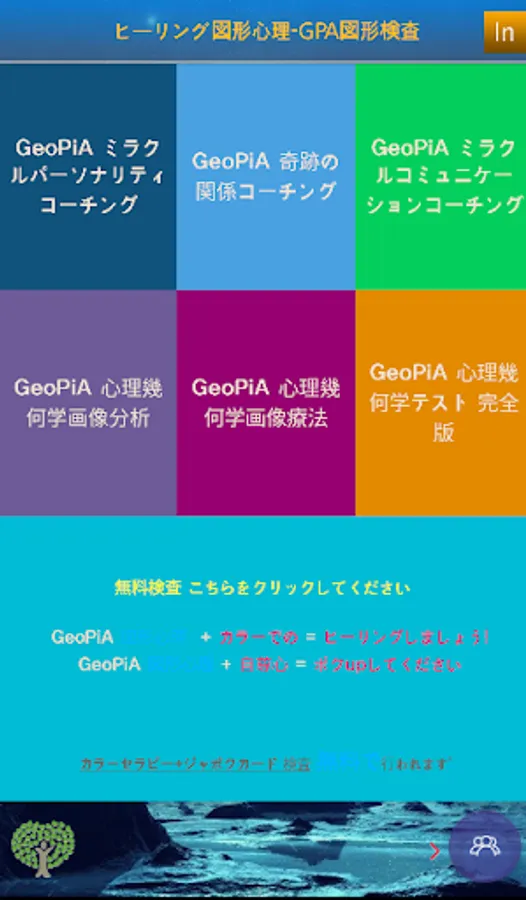 The GPA GeoPiA graphic psychology test is an integrated graphic psychology test consisting of a transparent picture test and an objective question item test developed by Omira for the first time in Japan and overseas. It can be used for counseling, coaching, and education as a personality classification based on graphic images that are vividly remembered. It is an inspection tool that has been scientifically and objectively validated and researched, such as dissertations and academic papers.