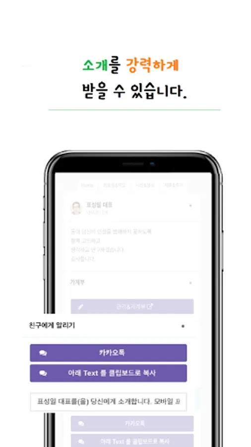 고객의 스마트폰에 당신의 프로필 명함이 노출되어 있으며