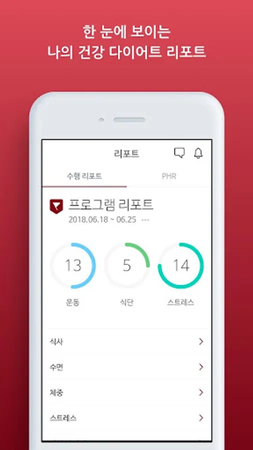 - 이를 통해 자신이 싫어하는 요소를 제거한 맞춤형 프로그램을 추천받을 수 있으며 스스로 주 단위의 목표량을 정해 운동, 식사, 스트레스 관리를 할 수 있습니다.