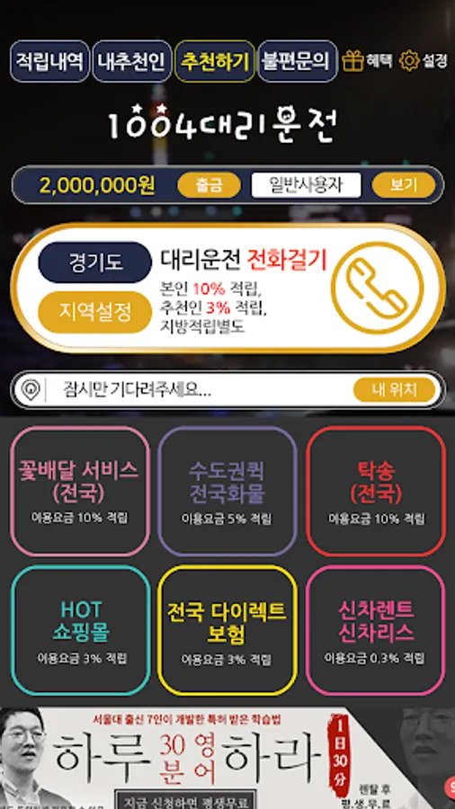 * 어플하나로 대리운전, 퀵서비스, 꽃배달 서비스를 이용하실 수 있는 적립식어플입니다.