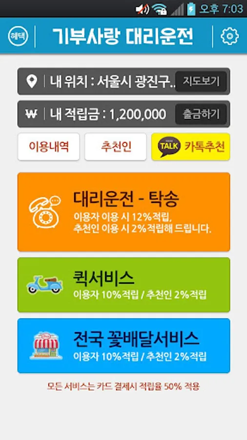 * 대리운전, 탁송 이용시 이용 금액의 12%을 적립해드립니다.