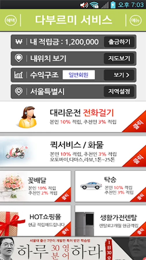 * 대리운전, 꽃배달, 퀵서비스를 하나의 어플로 ~ 적립금 받으시면서 이용하세요!!