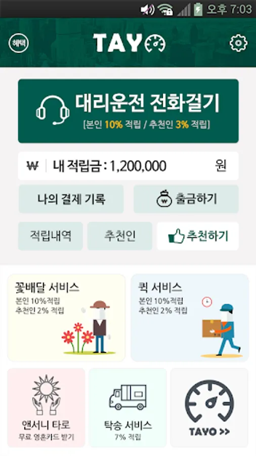 * When using surrogate driving, flower delivery, quick service, and vehicle consignment service, 5% of the amount used will be credited in cash.