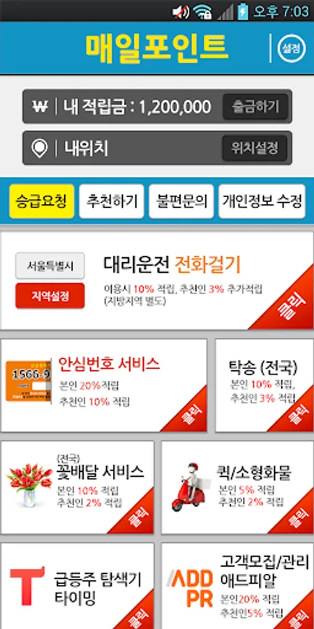 혜택7. 대리운전, 탁송, 퀵, 꽃배달까지 매일포인트에서 한번에!