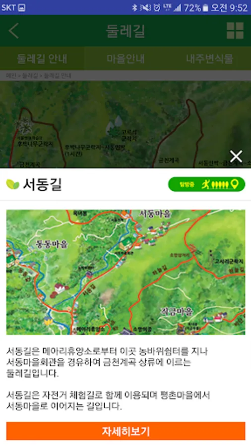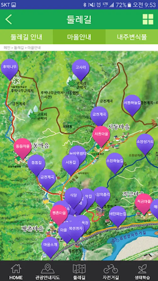 마을에 설치된 비콘신호를 통해 관광지 및 시설, 둘레길에 대한 정보를 제공합니다.