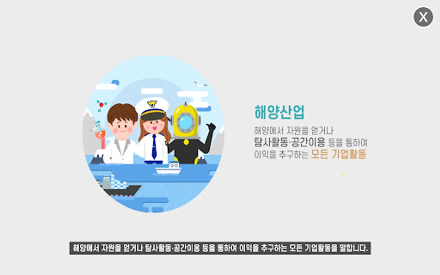 - If you touch the marine-related content you are interested in, an explanation video about the industry is played.