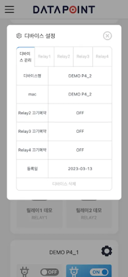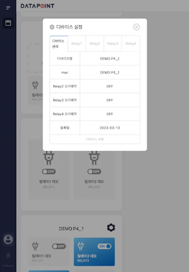 IOT 디바이스 DATAPOINT를 통해 기계장치나 릴레이의 전원을 On/Off하거나