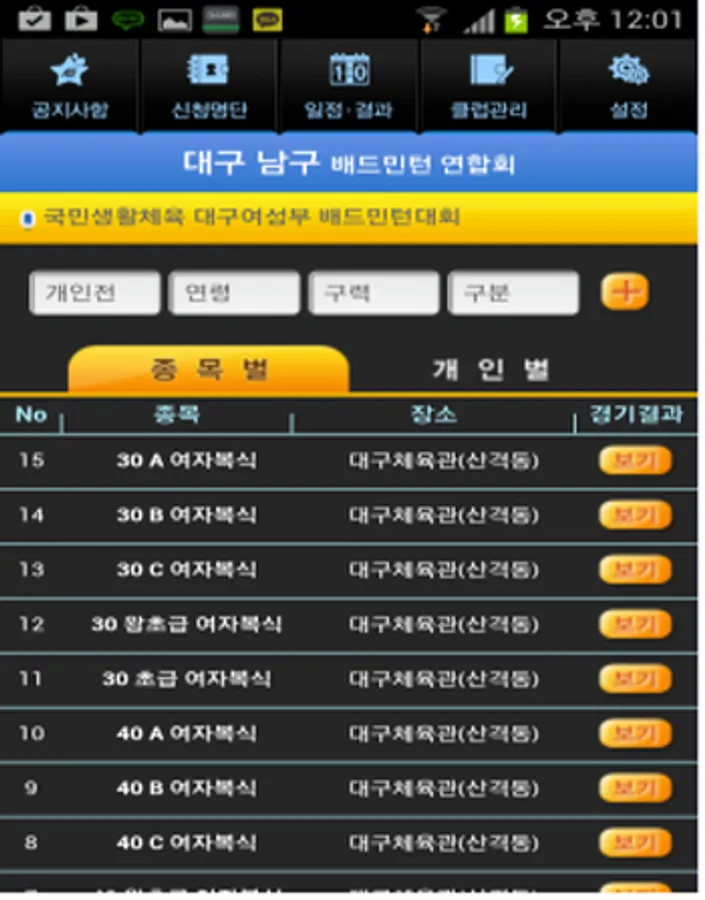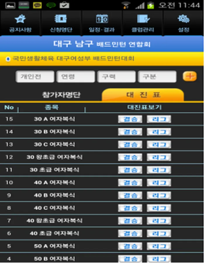 If you click daehoemyeong tournament schedule in real-time, game time and the game then you know the results.