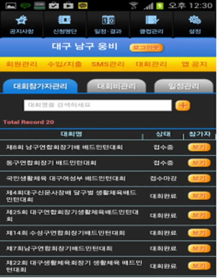 - The main features of the app notifications, membership management, tournament application, fee management, text management, tournament management, competition unmanaged