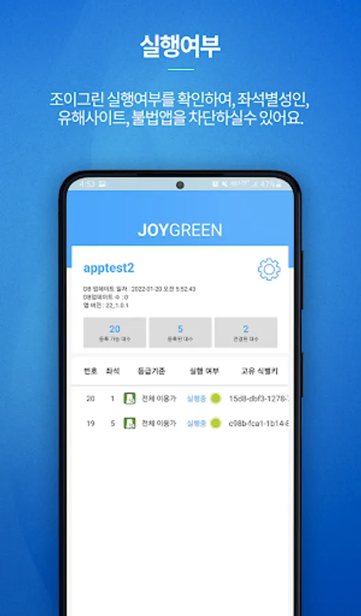 By checking whether JoyGreen is running, you can block adult, yuha sites, and illegal apps.