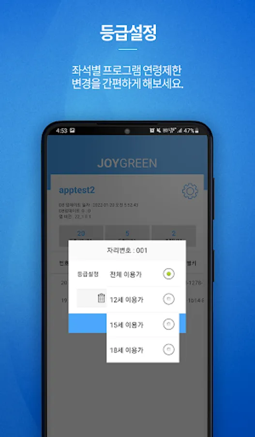 You can check whether Joy Green is running on the tablet for each seat, and you can change the grade on the device.