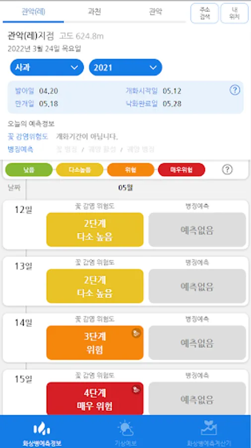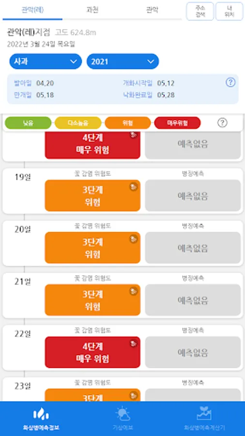 The prediction of the timing of the occurrence of burn disease uses data from the following weather observation points.