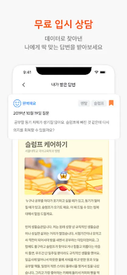 Just ask Hak-Hak-i to deliver questions to college student mentors and provide quick and accurate answers. Hakhak-i is a friend who will help you ponder the many problems that arise while studying for the entrance exam.