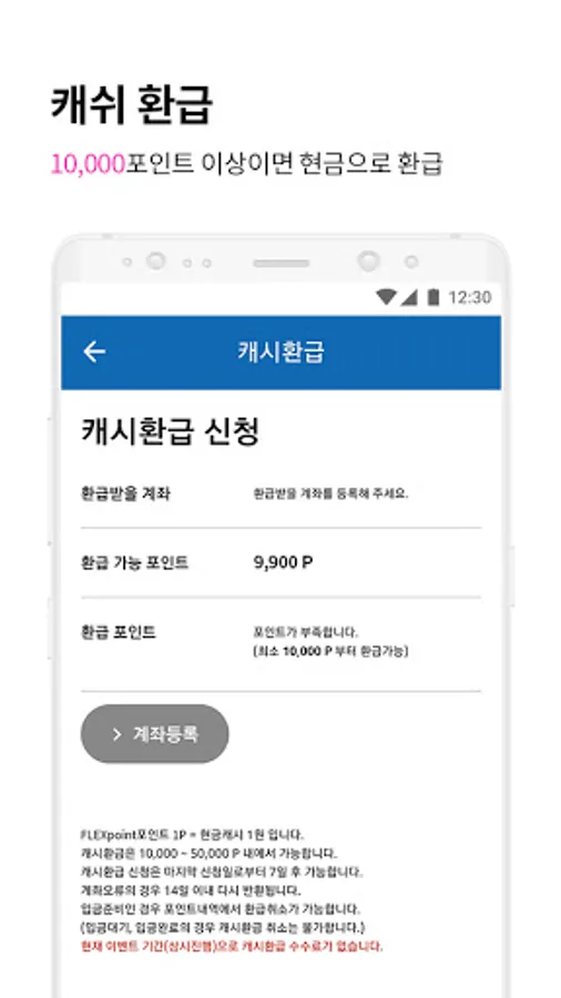 -1 P = 1 won, cash refund starting from 10,000 won for 10,000 P