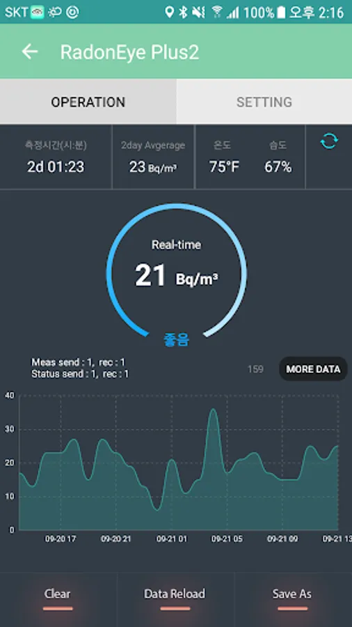 Radon Eye Plus 2 is a real-time indoor radon gas detector. Wi-Fi communication that allows you to view data on the Internet, and technology that facilitates device setup and data management using Bluetooth at close range. Its sensitivity is 20 times higher than that of a foreign-born type radon meter, so it is fast and precise. Therefore, radon data can be provided within an error of 10% within 1 hour after the start of measurement. In addition, technology based on IoT is applied so that it can be confirmed anytime and anywhere on the Internet, so it is easy to check data and operate the device remotely from a personal smartphone or PC. Compared to existing Radon Eye, Radon Eye Plus 2 has internet access, temperature, humidity and measurement time, and the measurement range extends from 100pCi / l to 255pCi / l. Indoor radon concentrations that cause lung cancer in humans vary by morning and evening, and even by season, they must be monitored and actively monitored in real time. Radon Eye Plus 2 makes this possible.