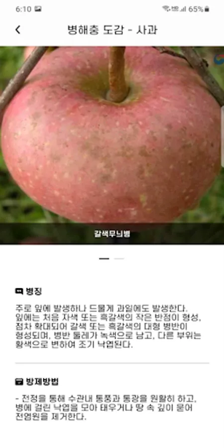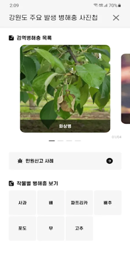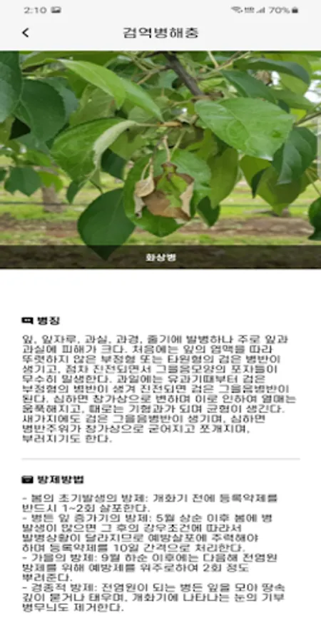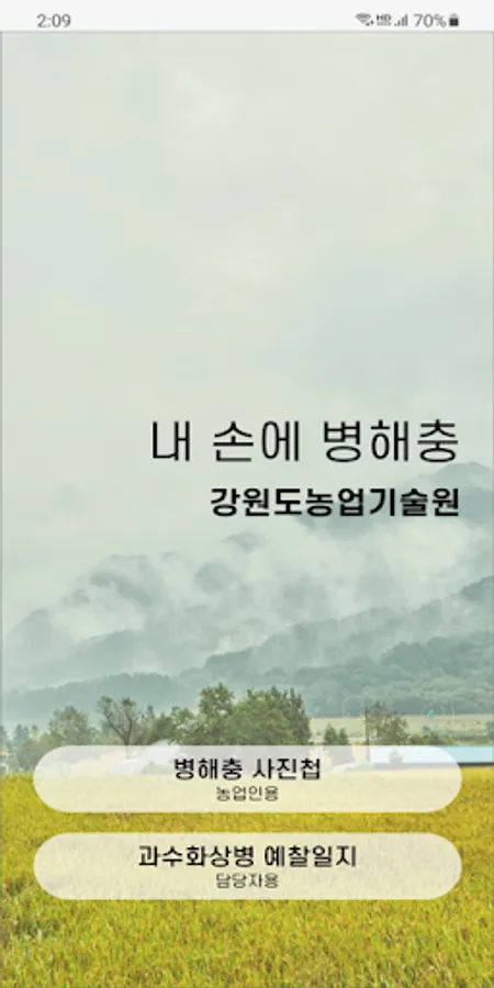 An app that contains symptoms, diagnostic methods, and control methods of pests and diseases that occur mainly on crops grown in Gangwon-do