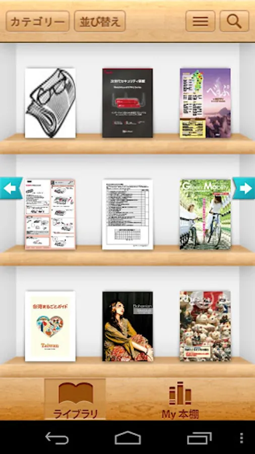 ・ダウンロードしたカタログや書籍は電子ブック形式でMy本棚に並びます。