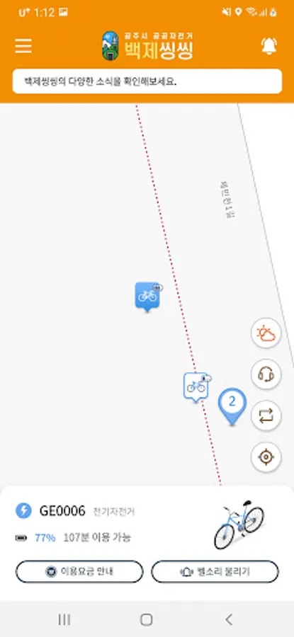 Smart Baekje Tabayu!! Gongju City "Baekje Singsing" is an unmanned bicycle rental system that anyone can easily use as a shared bicycle based on a rental office.