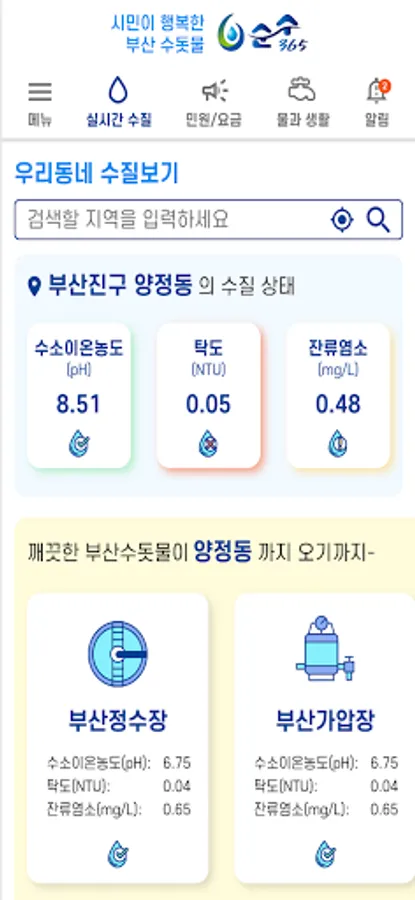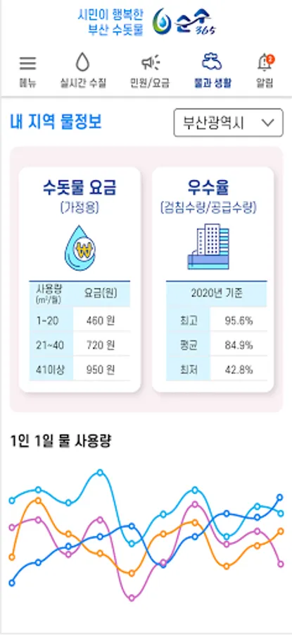 Pure 365 App is a service that provides water-related life information such as block chain-based water quality information, rate inquiry, and water supply information.