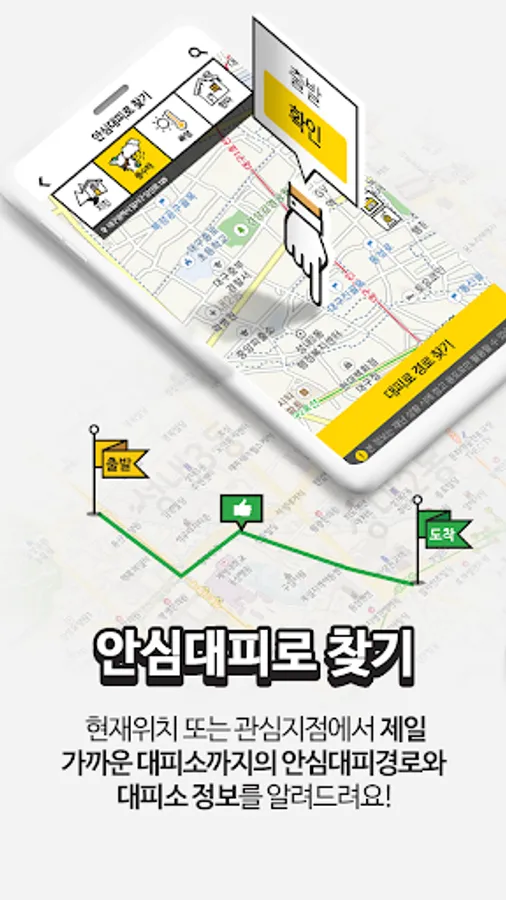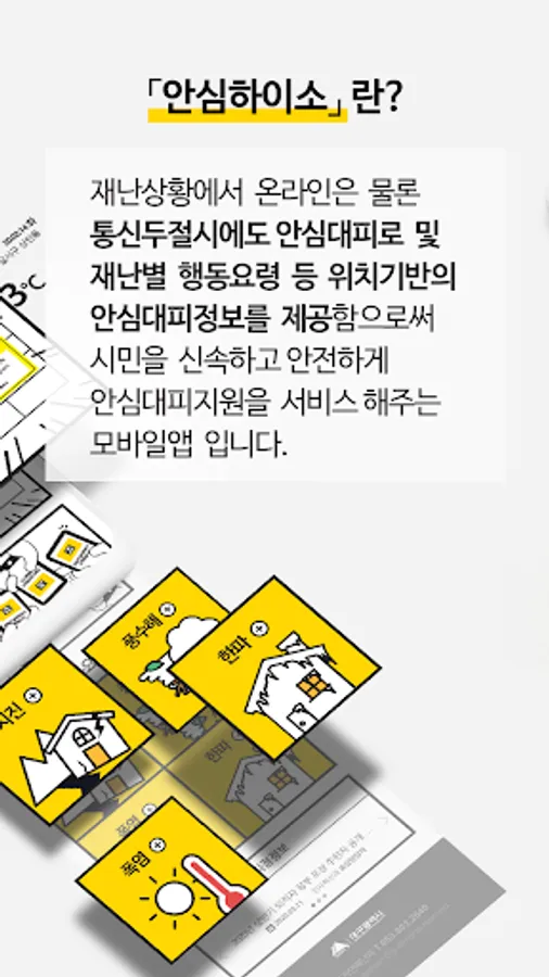 The'Relief Highso' app is a mobile for Daegu citizens that provides quick and safe safety evacuation support for citizens by providing location-based safety evacuation information such as safe evacuation routes and disaster-specific actions even when communication is interrupted by online water in a disaster situation. It is an app.