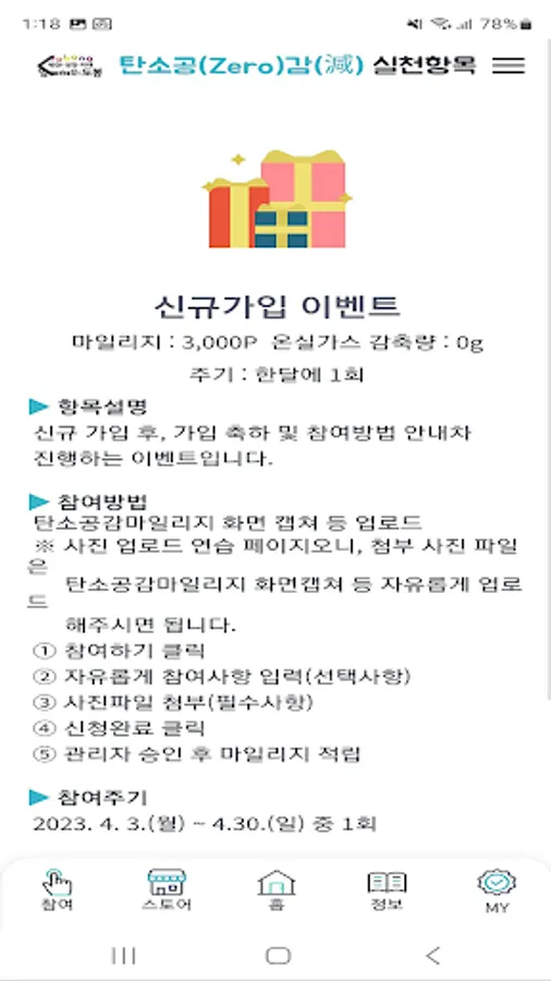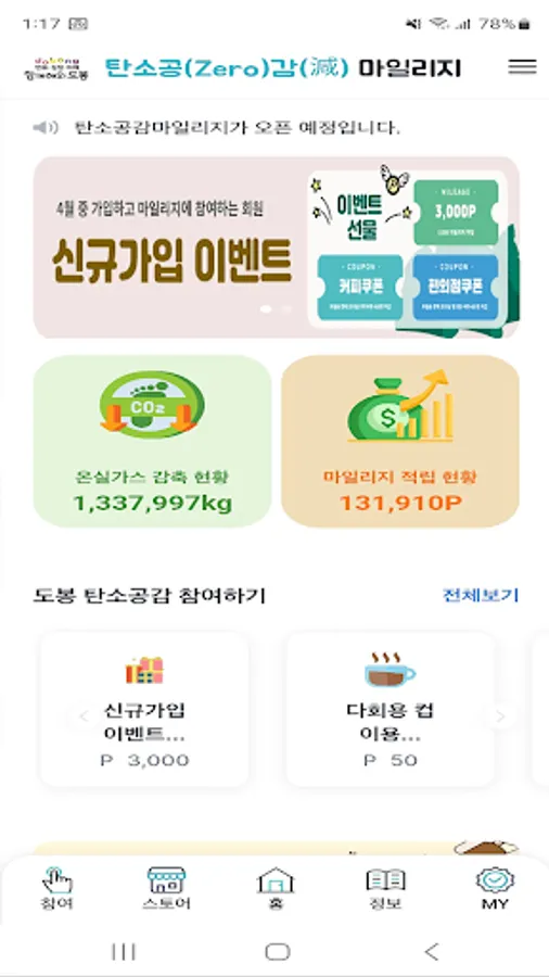 An app distributed by Dobong-gu Office as an app that reduces carbon through a carbon reduction (Zero) app.