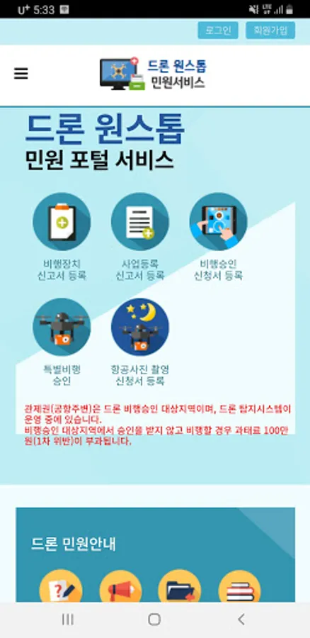 In connection with the ‘V-World’ map of the Ministry of Land, Infrastructure and Transport, airspace information such as no-fly zones and control zones is provided in an easy-to-understand manner.