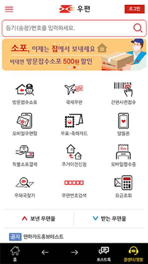 Door-to-door parcel delivery (pick-up), EMS/international mail, simple pre-registration, affordable phone, post-talk (push notification), pre-order sales of commemorative stamps, contract customer mobile, post office search, delivery inquiry, postal code search, postage inquiry, We provide various post office mobile services such as additional postal service.