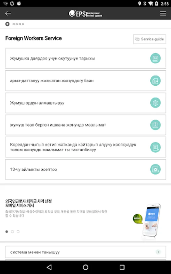 - Employment Permit System (EPS): Provides all the information related to employment authorization