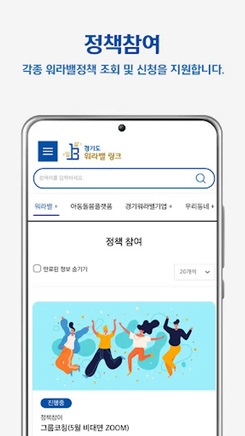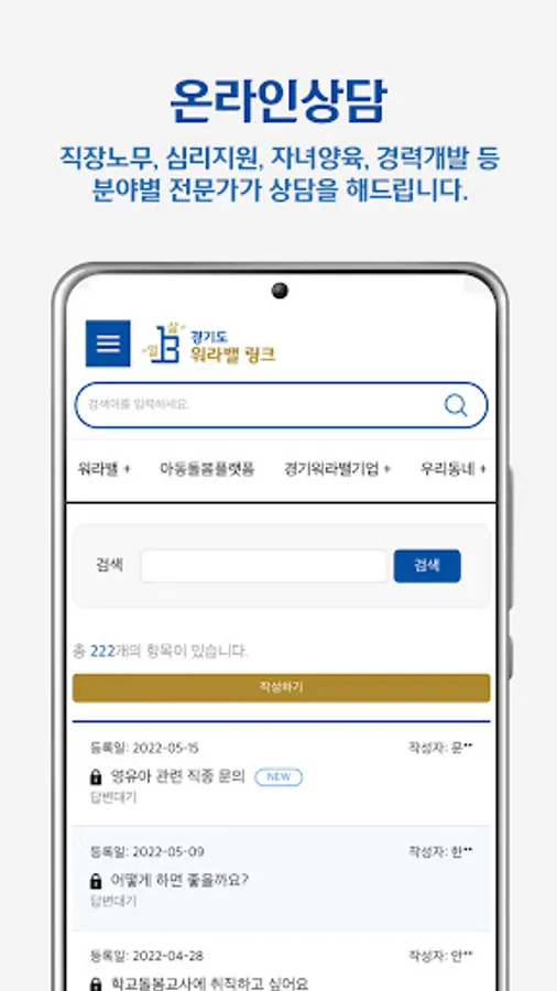 It is an app that provides services so that you can use the child care platform, various work-life balance information, and online counseling provided by Gyeonggi-do.