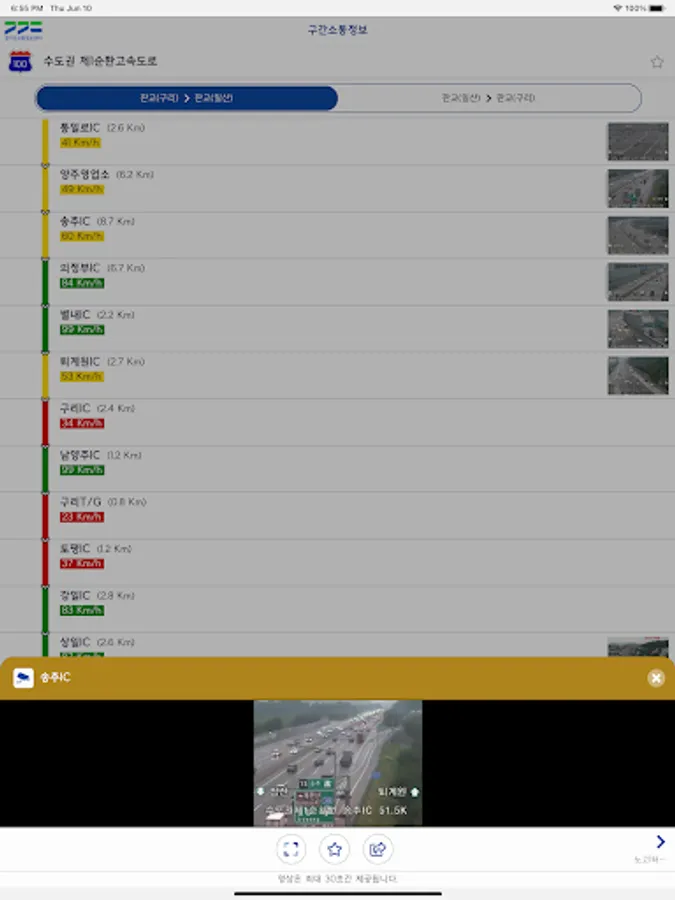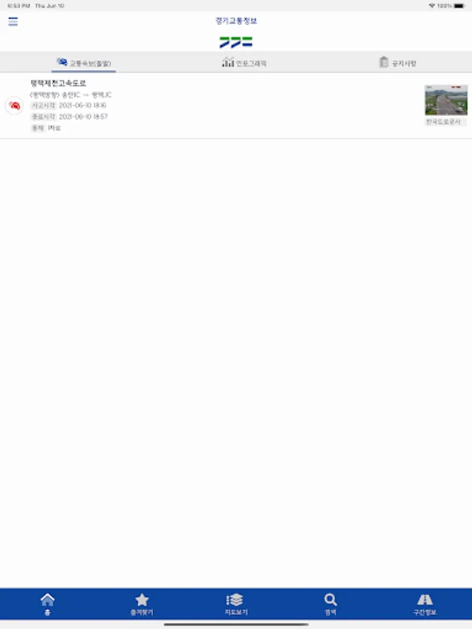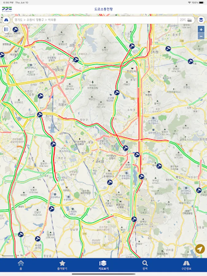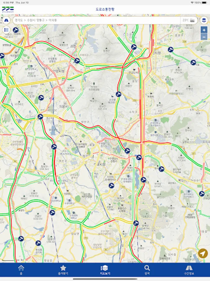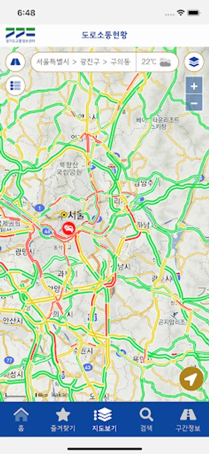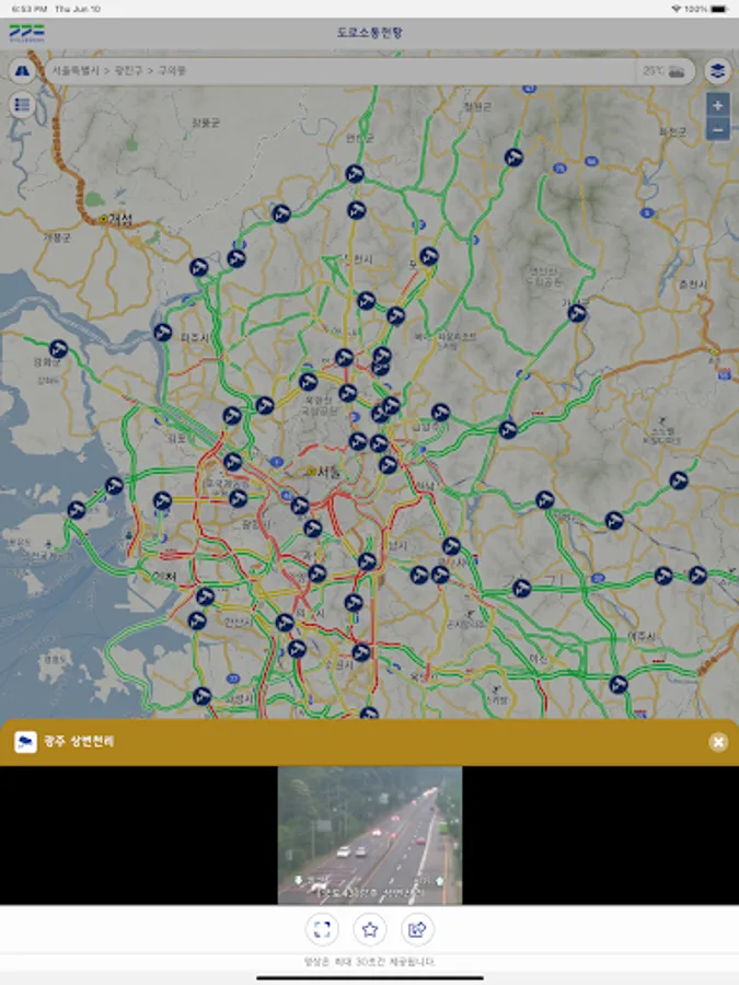 The Gyeonggi traffic information app provides real-time communication status of the metropolitan high-speed national highways, general national roads, arterial roads in Seoul, and major city roads in Gyeonggi-do as electronic maps and text information. You can also check the real-time CCTV video. Gyeonggi-do Traffic Information Center is with you for a safer and more convenient transportation life.