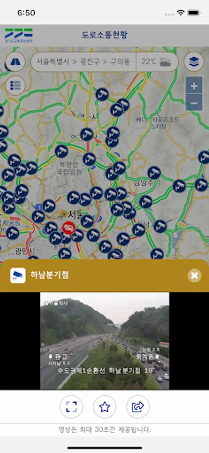 4) Added a function to share the traffic situation by road section at a glance, a video to directly check a blocked road, and a road video to a friend