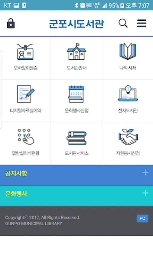 * If a white screen occurs after installation, please click [Phone Settings-Applications (Apps)-Gunpo City Library-Storage-Delete Data].