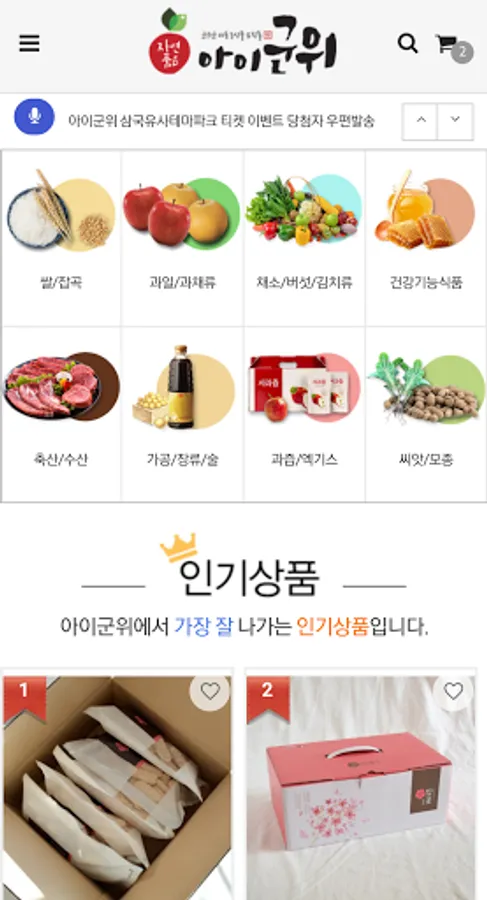 Aigunwi is a shopping mall for agricultural products representing Gunwi, which is supported, built, and operated by the Gunwi County Office for the farmers of the Gunwi.