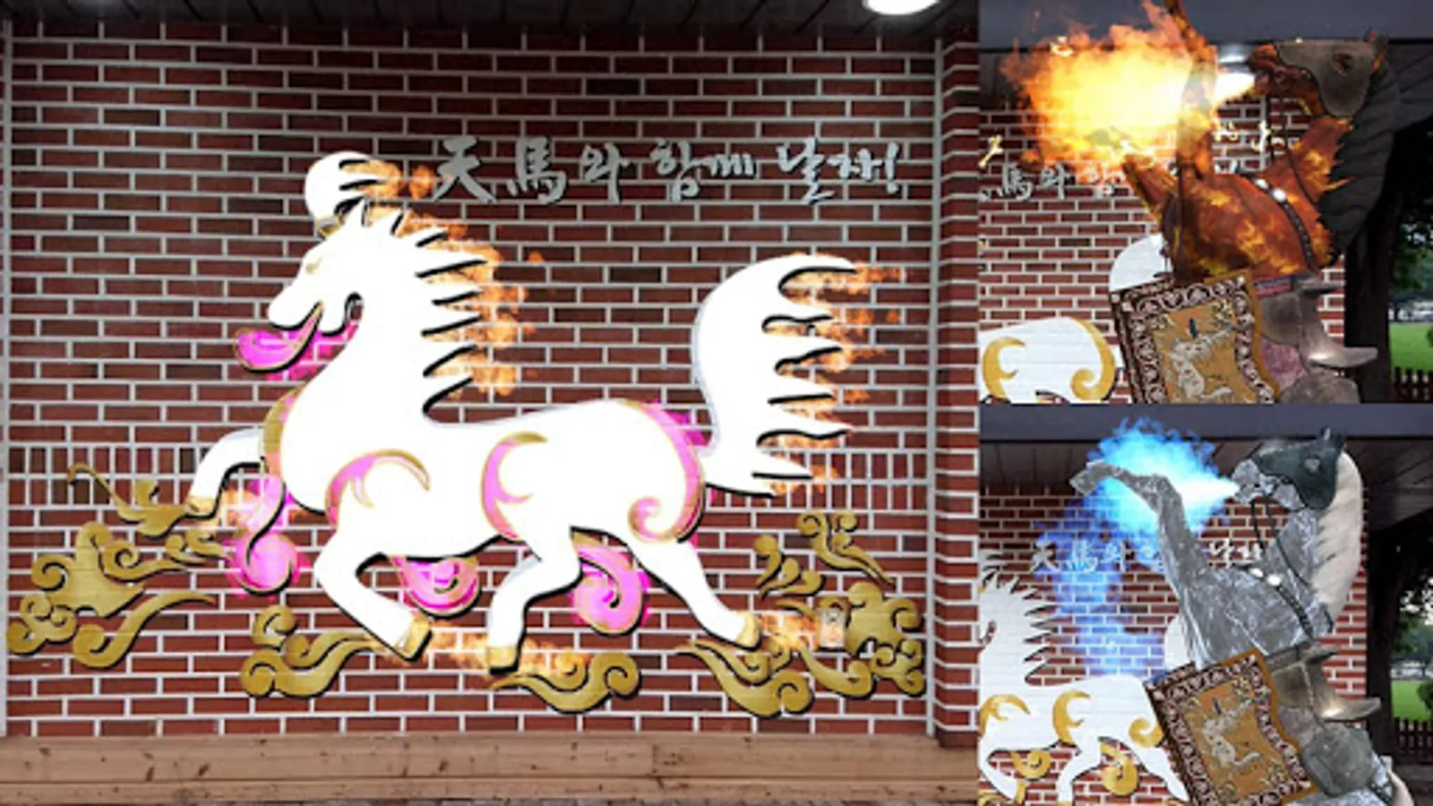 In the Daeungwon Theater, you can draw Chunmudo on the wall, taking into consideration the family members of the tourists. The Chunma family can choose Dad, Mom, and Foal, and choose various horse motions depending on the user's operation.