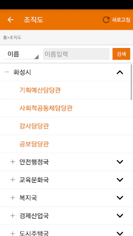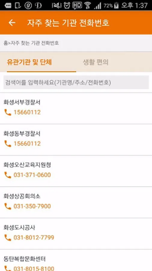 Hwaseong immediately be connected to the call center employees on the main screen and search, retrieve the department, search for the business person looking for a job search, and that citizens are to help you to talk directly with representatives from the dialing function.